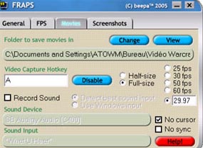 Résolution : Baissez là en 800*600*16 ou gardez une haute résolution et utilisez FRAPS en « half-size ». Dans tout les cas, restez en 16 bits, vous ne verrez aucune différence en 32bits. Après, si vous avez un super PC, vous pouvez garder une résolution plus haute en « Full size ».