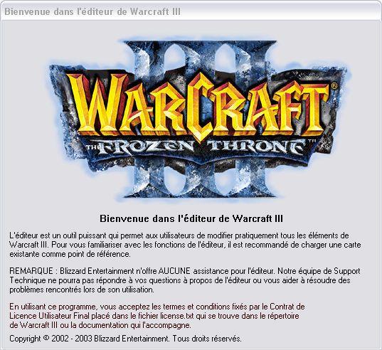 Alors, déja pour commencer, on va le lancer (c'est mieux quand même). Pour ça, pas la peine d'aller chercher bien loin, aller dans votre menu démarrer, programmes, Warcraft III, et hop là, le petit raccourci "Editeur de Warcraft III".