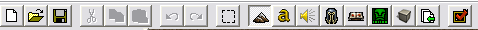 Un peu un dessous, une barre d'icônes. Dans cette barre d'icône vous avez accès aux choses les plus importantes, c'est à dire tous les éditeurs (éditeur d'objets, éditeur de déclencheur, etc...). Pareil, tout est déja marqué si on laisse le curseur sur une icône, donc je vous laisse découvrir ça de vous même