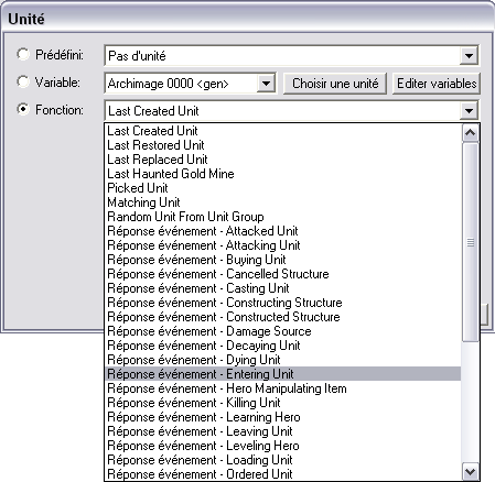 - Comme "Entering Unit" est toujours valide pour les actions, on peut tout simplement le mettre. Car, le jour où vous n'aurez plus d'unités "spécifiques", comme notre archimage, et bien votre seule solution sera de mettre "Entering Unit", puisque votre unité ne pourra pas être listée