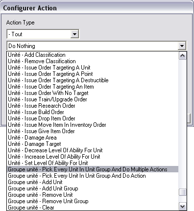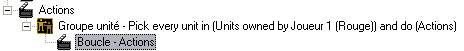 On peut mettre tout type d'action dans la Boucle - Actions réservée aux actions à effectuer sur le groupe d'unités, même des actions sur des joueurs ou n'importe quoi. Toutefois, les actions se reportant au groupe d'unités doivent OBLIGATOIREMENT figurer dans la Boucle - Actions.