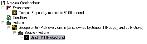 Groupe-unité - Pick every unit in (Units owned by Joueur 1 (Rouge)) and do (Actions), les futures actions seront crées à la suite du déclencheur et non pas à l'endroit des actions réservées au groupe-unité.