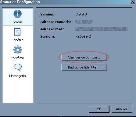 Fenêtre : Réglez ici l'apparence des autres connectés à Hamachi.