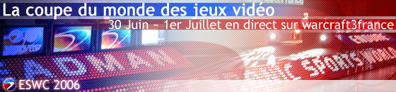 06:23 CET, après une nuit blanche passée à se creuser la tête, c'est avec une grande fierté que je vous annonce l'ouveture du dossier LIVE ESWC 2006 sur warcraft3france.com à travers lequel vous allez pouvoir vivre en direct l'évènement pendant toute sa durée !