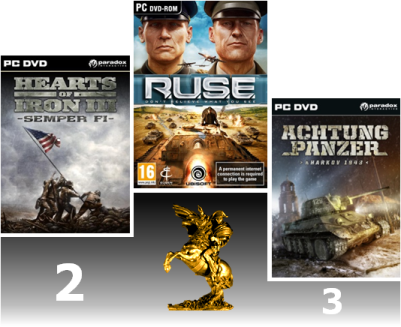 Il est particulièrement intéressant de voir que les 3 jeux du podium reflètent 3 aspects totalement différents des jeux sur la seconde guerre mondiale. Nous retrouvons ainsi un RTS grand public (RUSE), un autre largement orienté simulation (Achtung Panzer : Kharkov 1943) et, enfin, un jeu de grande stratégie qui tire assez fortement sur le wargame (Hearts of Iron 3 : Semper Fi). Ce résultat est bien la preuve que le thème de la seconde guerre mondiale est une source importante d'inspiration, quelque soit le type de jeu développé. Il suffit de regarder le succès des FPS comme Call of Duty et Medal of Honor.