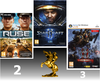 Il est temps de nous intéresser au "Meilleur Jeu de l'Année 2010". Comme pour la Catégorie "Meilleur Jeu de Stratégie en Temps Réel", Starcraft 2 a très largement dominé cette section. Au point que les autres jeux ont du se partager quelques miettes. Et à ce jeu du partage, ce sont les jeux Paradox qui s'en sortent le mieux en s'accaparant la deuxième (Europa Universalis 3 : Heir to The Throne) et la troisième place (Victoria 2). Ils peuvent dire merci à la communauté Strategium qui aura été très présente tout au long du concours. Derrière, viennent les gros blockbusters, tels RUSE, Napoléon : Total War ou encore Civilization V, puis les jeux plus modestes (Achtung Panzers, Hegemony, etc).