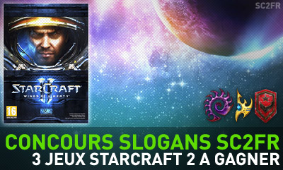 C'est la dernière ligne droite pour notre concours de slogans SC2FR puisque le concours se termine ce soir à 23h59. Il ne vous reste donc plus que quelques heures pour poster vos slogans et tenter de remporter un des trois jeux Starcraft 2 : Wings of Liberty du concours.